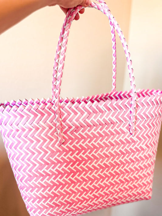 Piper Rattan & Gingham Heart Drop Earrings in Blue