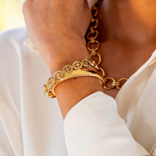 Monique Compass Hinged Bangle - Gold/Blue Labradorite