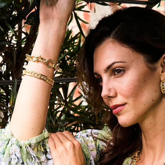 Bangkok Bamboo Link Bracelet, 7.25" - Gold/Green Enamel