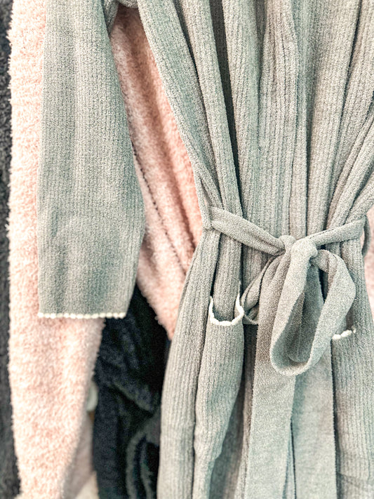 Barefoot Dreams Grey & White Contrast Scallop Ribbed Robe
