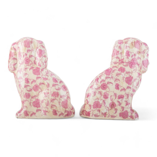 Pink Florets Staffordshire Dog- Medium