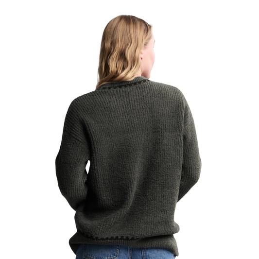 CozyChic® Ribbed Sweater with Blanket Stitch Small- Dark Moss