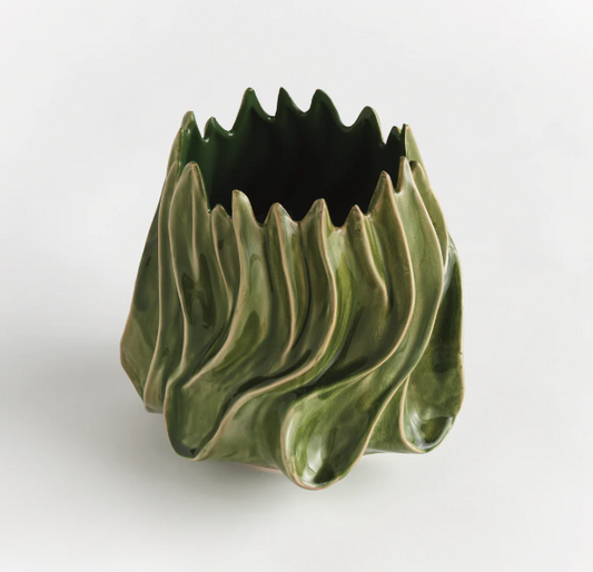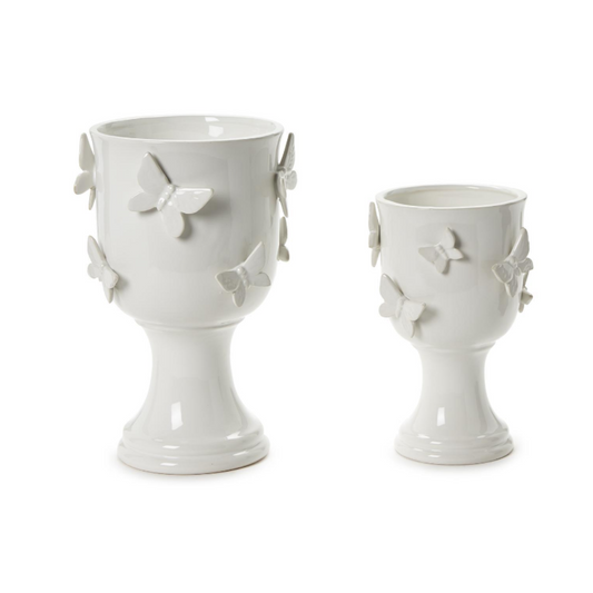 Butterfly Pedestal Cachepots with Sculpted Butterflies - Ceramic