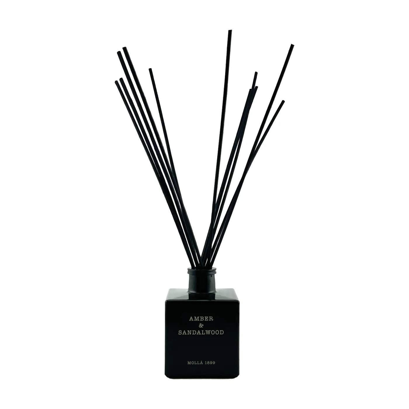 All-natural, essential oil derived fragrances. Rattan rods included. Refills available Amber & Sandalwood, a spicy aromatic essence accompanied by a fresh citrus finish, takes us to the heart of Egypt, where the creaminess of sandalwood meets the sensuality of cedar. The fruity nuances of bergamot give it a sparkling touch capable of captivating any space. Its sweet, musky smell and a slight touch of wood, sweeten all the rooms in your home.