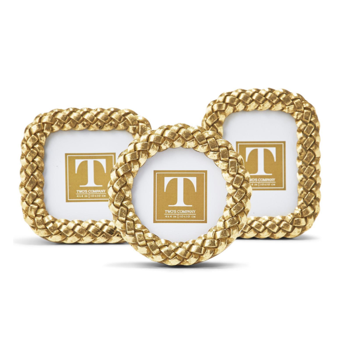 This golden braided frame is intricately detailed and crafted from resin. Finished with a velvet backing, these are beautiful frames from front to back!