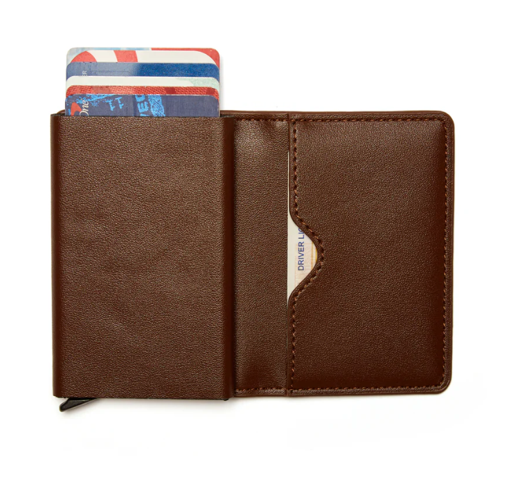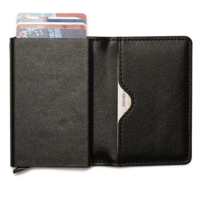 The Chase Credit Card Holder is redefining the wallet. The RFID shield protects your cards from unwanted wireless communication. Sleek design features a lever for instant credit card access, fans out easy selection for up to 6 cards. Slim pocket for your business cards or money. Great for everyday use and be sure to bring it along your next trip.