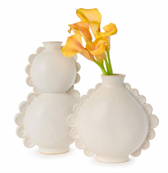 Elevate your space with the Circlet Vases by Stoneware. Handcrafted with precision, these vases features a double and single circle design, adding a touch of modern elegance to any room. Place fresh blooms in the vases to bring life to your dining table or shelves. Embrace the artisanal feel of these stoneware vases and create a stunning focal point in your home.