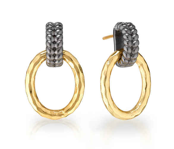 Designed for the modern woman, these link earrings are as timeless as its namesake icon — and know how to make a subtle statement when the moment calls for it, just like she did. With a braided motif in hammered gold and black rhodium, reminiscent of Egypt’s beautiful wheat fields, these earrings radiate feminine power and are perfect for queening over your daily adventures.