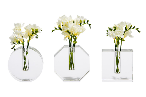 Small buds or blooms are suspended in crystal for all to enjoy with these geometric vases. A beautiful housewarming or wedding gift, the vases are sure to freshen and brighten a loved one's home.