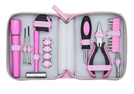 Brouk & Co's Fix-It Kit has all your Basic Repair Tools packaged in one convenient Kit. Our Vegan Leather-Bound Case is the perfect size for your Home, Car, or anywhere else you need it to go! This 22-piece, Toolkit includes a Hammer, Pliers, Screwdriver, and all the other essentials. Best of all, our Tool Set comes with an LED Flashlight! You'll have everything you need the next time you're in a bind