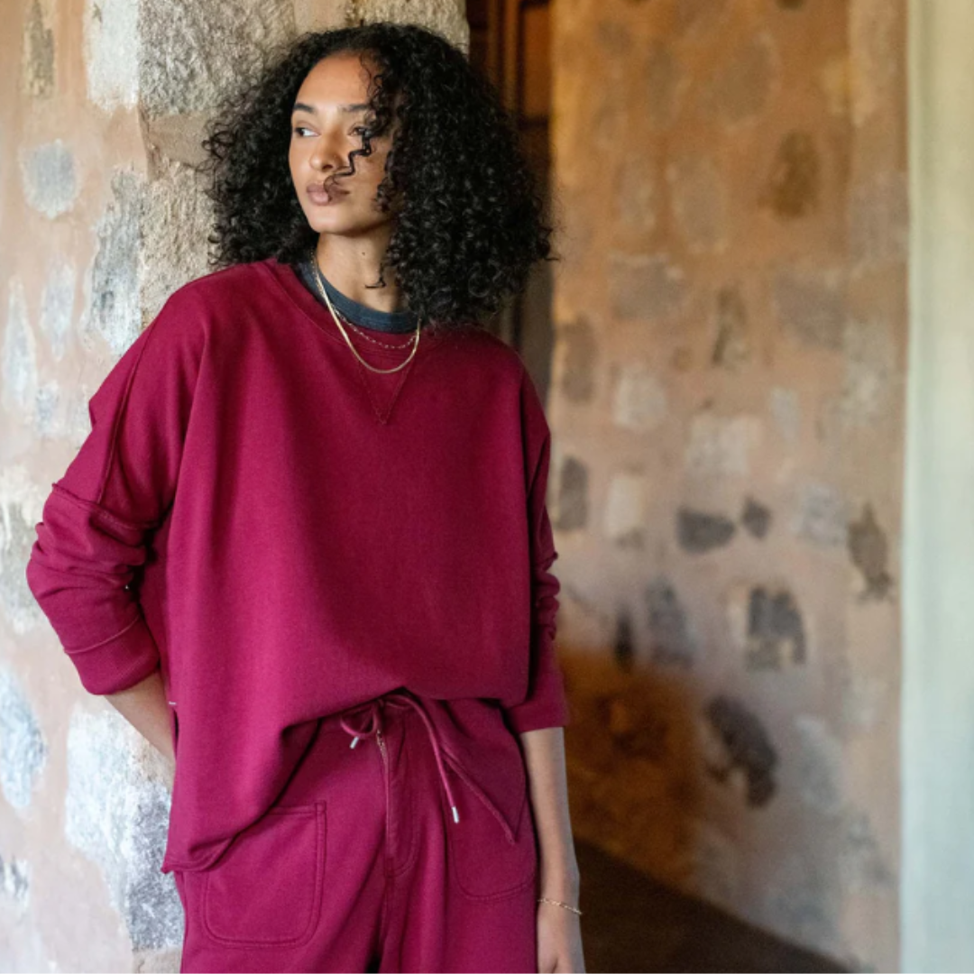 The Frenchie, made with super-soft French terry, is lightweight and stretchy. This crewneck maintains a flattering shape perfect for the beach, walks, or lounging.