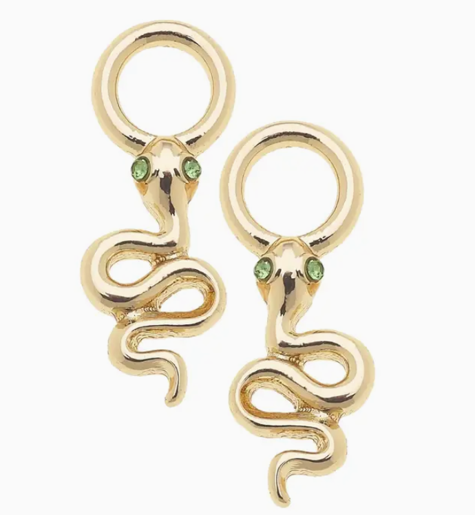 Green Eyed Serpent Huggie Charm (Set of 2) in Shiny Gold