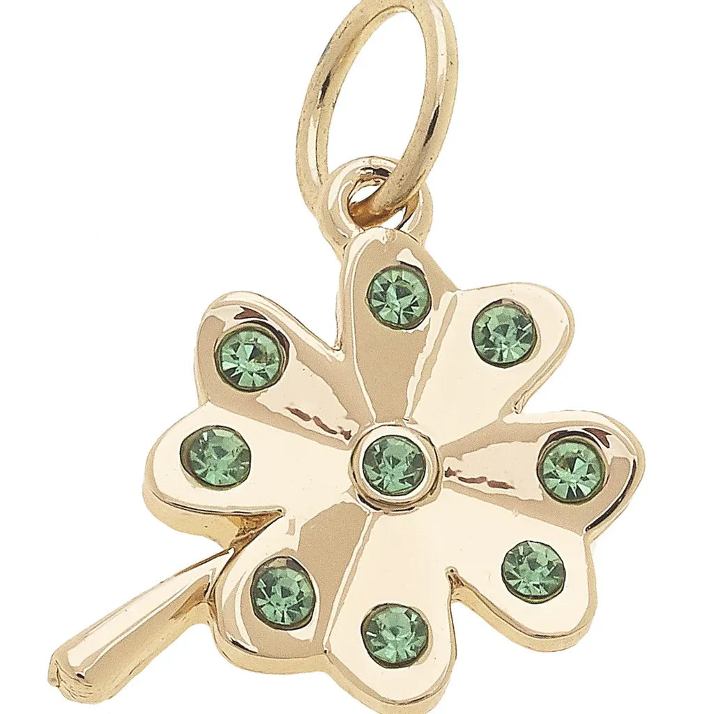 Bring a little luck with you wherever you go! The Green Pave Shamrock Charm in shiny gold is a sparkly way to add good fortune and Irish charm to your jewelry. Mix & Match and add this charm to our Charm Necklace or Bracelets to show off your unique style. DETAILS: 18K Triple Gold Plated .8"L x .65"W