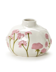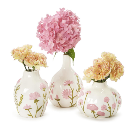 Bring the beauty of a springtime bouquet into your home year-round. Each vase is a unique piece of art, hand-painted with intricate pink floral designs that add a romantic flair to any room. The varying sizes make them versatile for any space, from the mantel to the dining table.