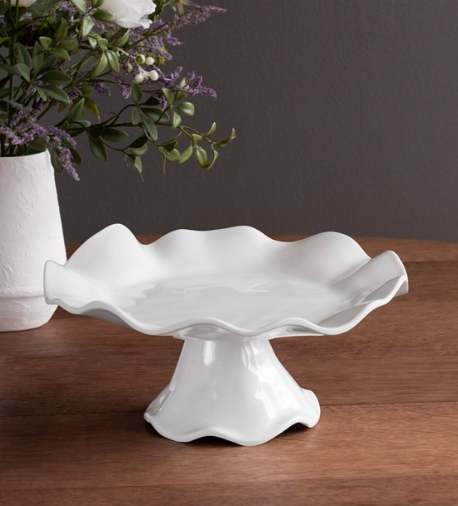Elevate the everyday with a pedestal cake plate from Beatriz Ball. The fabulously functional VIDA Havana Collection features sculptural works of art presented in luxury melamine, all as practical as they are beautiful. This piece captures the essence of Havana style in an attractive pedestal. The VIDA Havana Small Pedestal Cake Plate (White) rises to the occasion for any serving situation. Great for presenting small cakes, desserts, and other culinary delights in high style. A great gift for the baker or dessert lover. Pair with any larger pedestal cake plate to increase the serving possibilities. The versatile and cleverly designed white cake stand features a twist-off pedestal for easy storage. Made of luxury melamine for everyday enjoyment, this piece is ideally suited for indoor and outdoor entertainment. Dishwasher safe (top rack), heavy weight, food safe, BPA and PABA free.