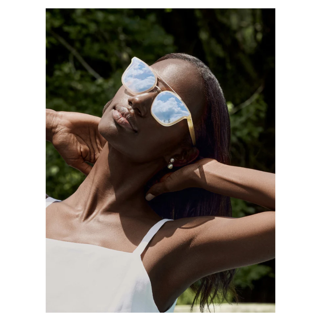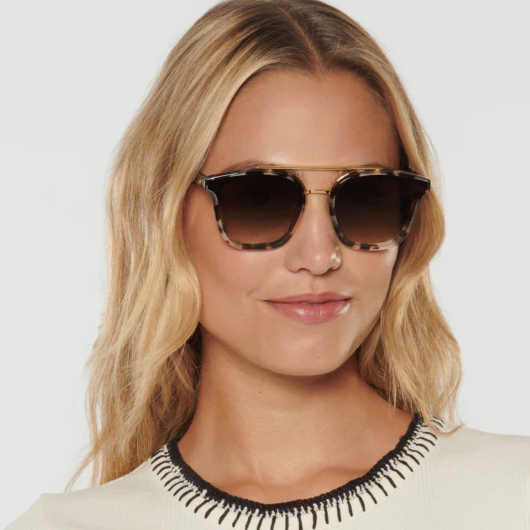 COLISEUM NYLON is an aviator silhouette with a KREWE twist. This frame is elegant yet bold, featuring squared lenses with rounded corners. We borrowed the capstone of this style from our CLIO NYLON sunnies—an integrated brow bar and bridge, connected by a single piece of precious metal wrapped around the edge of the acetate for an added touch of luxury