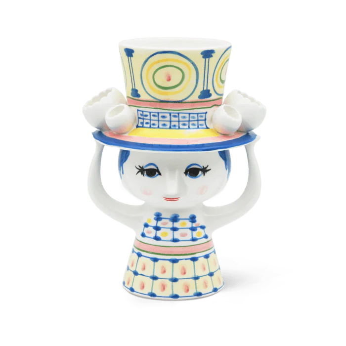 The Lady with Hat Collection comprises beautiful, colorful design pieces with quirky details and hand-painted decorations.