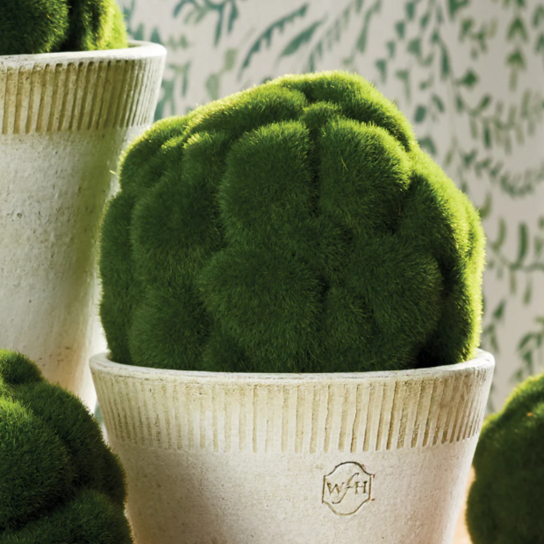 As if they were scooped from the foothills of Carolina, these mood moss orbs are expertly crafted. Scattered along a tablescape, or placed in a favorite low bowl, a fresh, clean look.