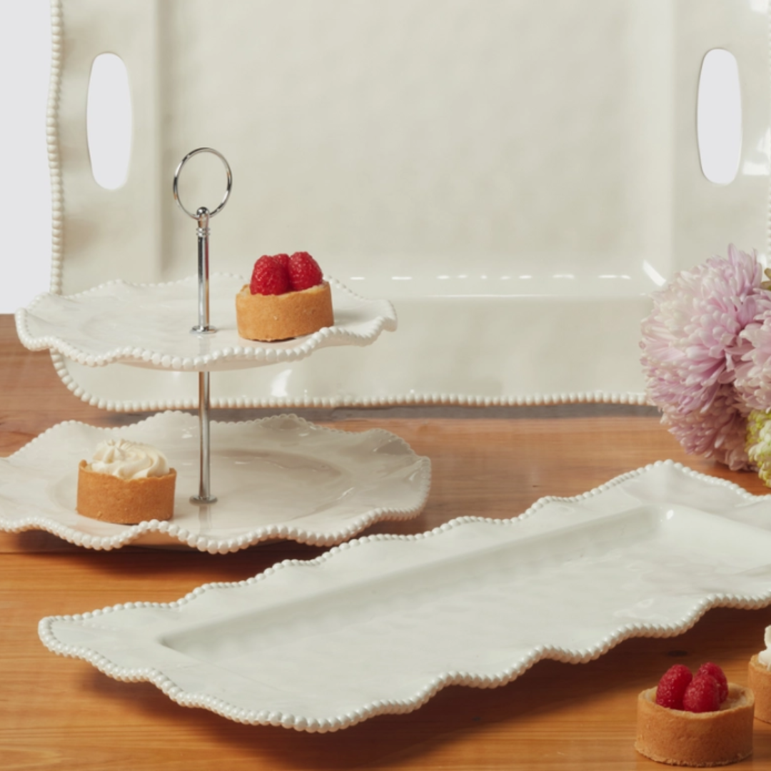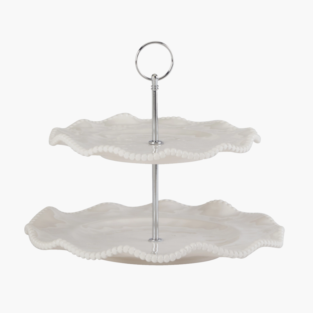 Heighten your serving style with the Perlette Cream 2 Tier Server, a beautifully designed piece that adds a touch of sophistication to any occasion. This server is perfect for displaying an assortment of sweets, savories, or appetizers, making it a must-have for your hosting arsenal.