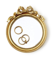 Elevate your vanity or dresser with the charming Round Mirror Trinket Tray. This delightful piece, crafted from resin and glass, features a delicate accent bow that adds a touch of elegance to any space. Perfect for storing your favorite jewelry or small trinkets, this tray is as functional as it is beautiful. Handcrafted with care, this trinket tray is a must-have for those who appreciate the finer things in life.