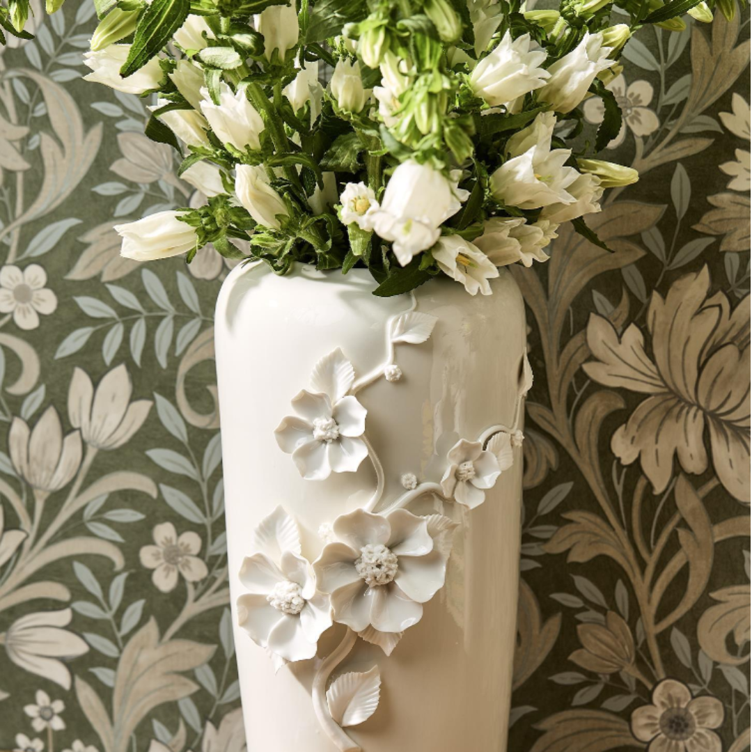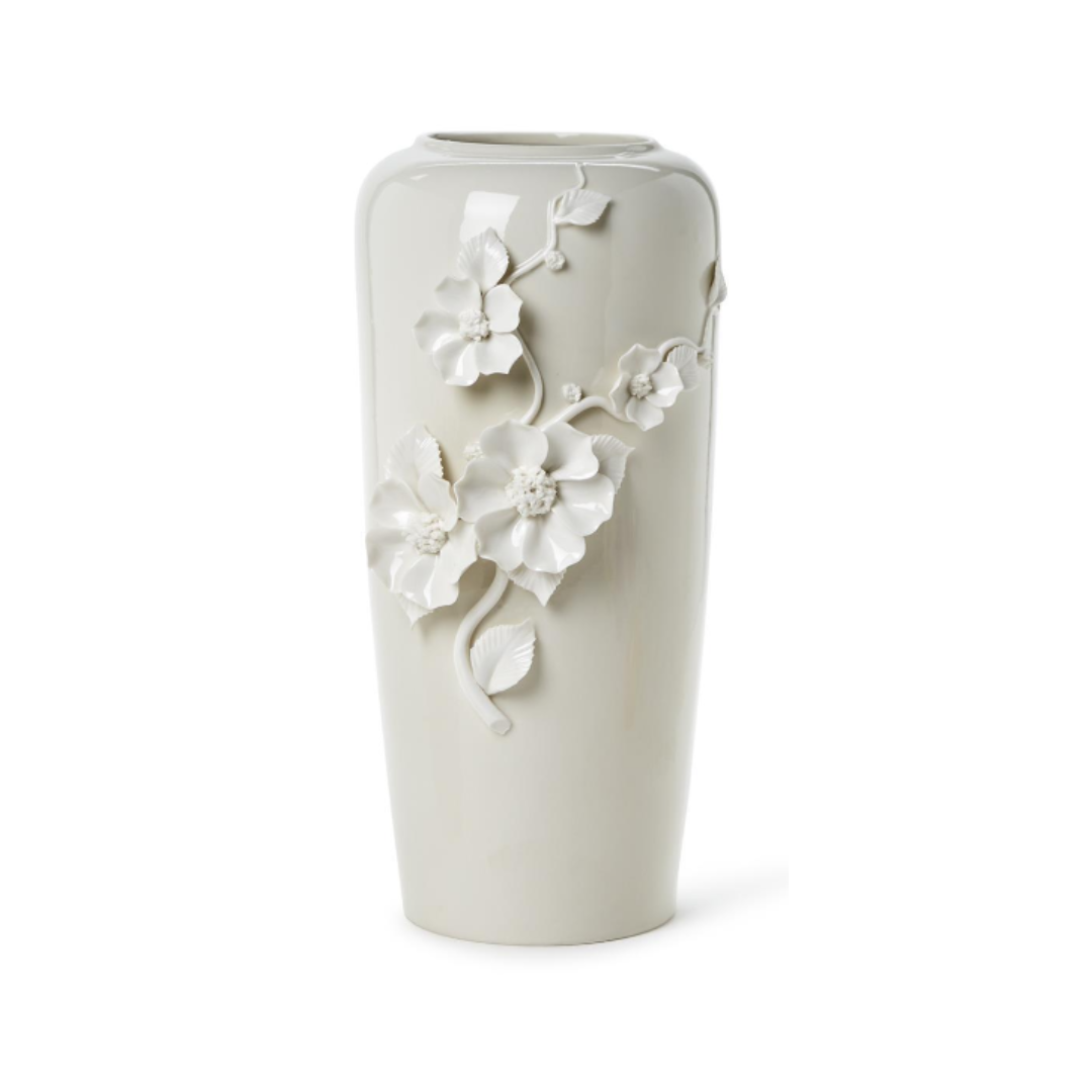 Crafted from porcelain, these vases feature 3-D sculpted flowers for a touch of whimsical elegance