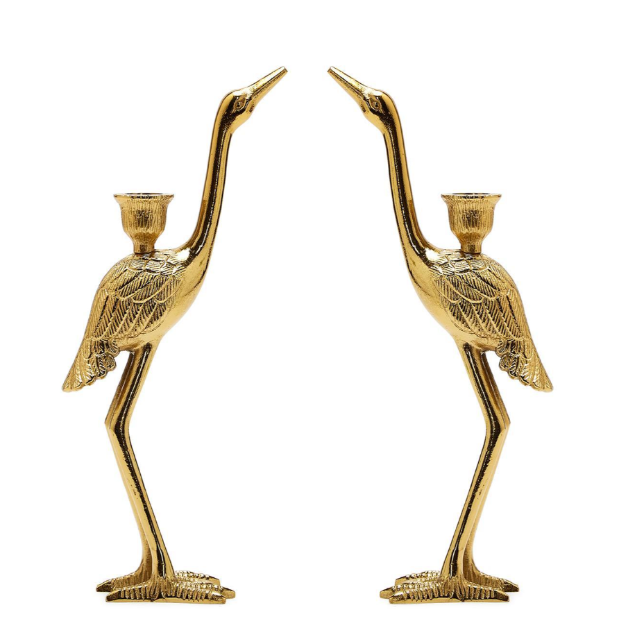 Set of 2 Crane Candle Holder with Antiqued Gold Finish