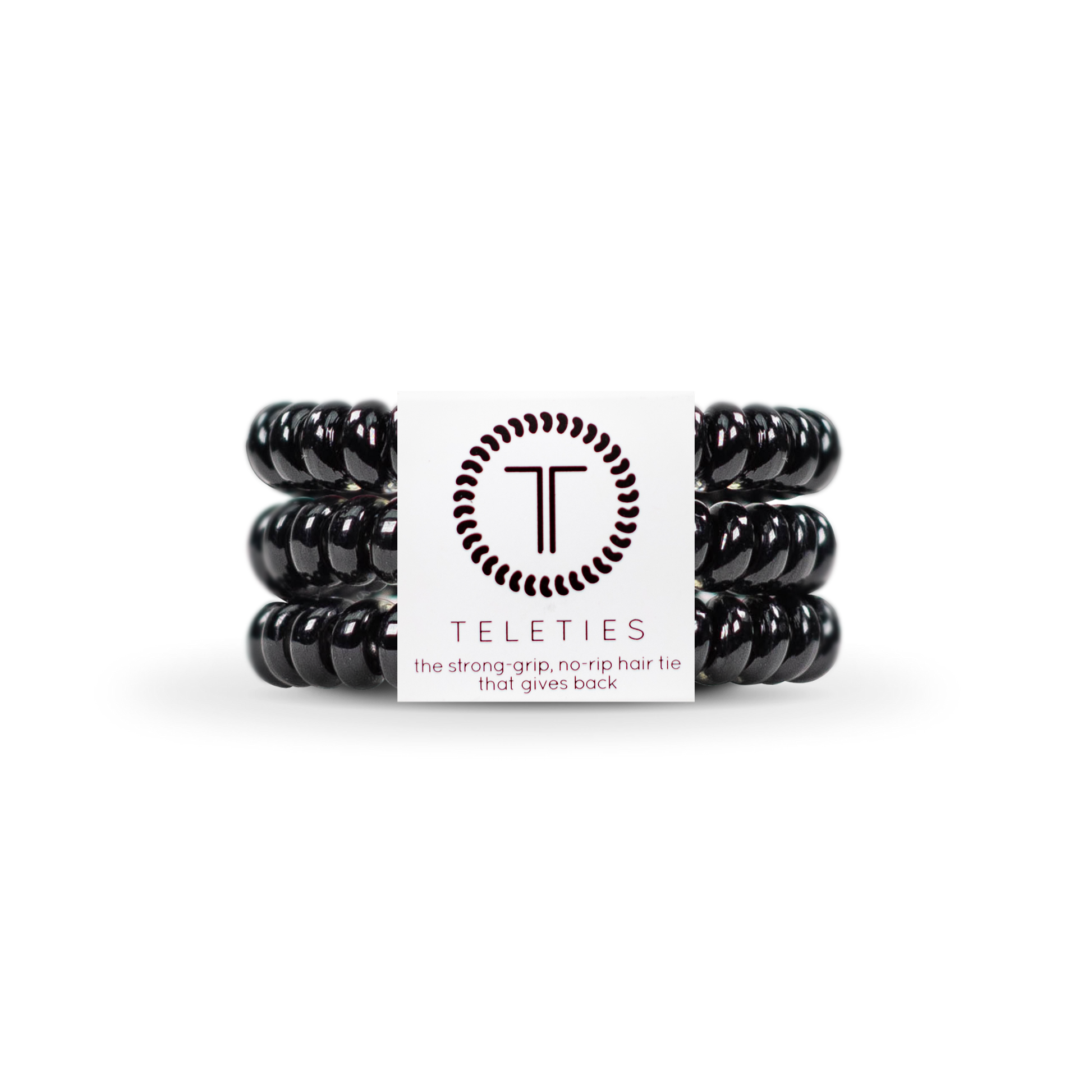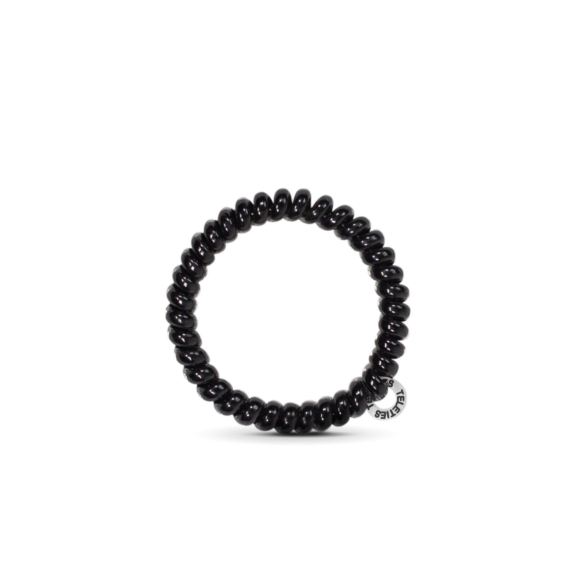 Jet Black Small Hair Ties in Black offer a strong grip without damage, doubling as a chic wrist accessory when not in use. Your new favorite hair essentials all year round.