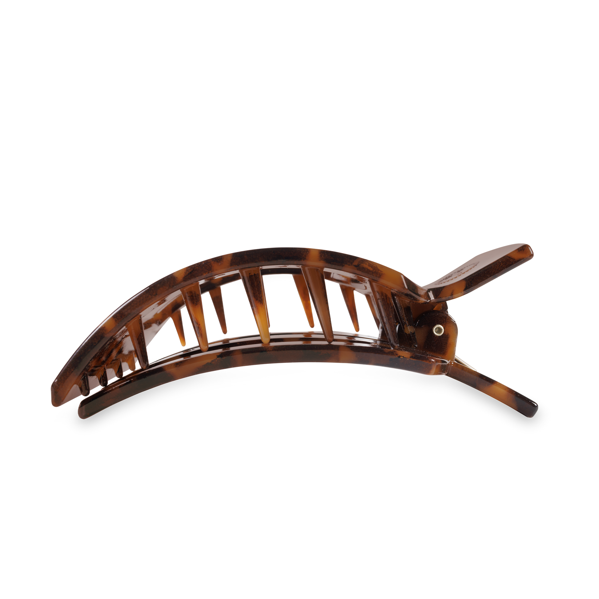 Lay flat and relax with the new TELETIES Tortoise Large Flat Square Hair Clip in Brown. This hair clip is designed to allow you to lay back flat, do yoga, or sit comfortably in a seat with a headrest, and it is made with the same material that is nearly unbreakable.