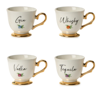 Let's spill the tea with the Teacup Shot Glasses. Designed by Boyar Gifts NYC, this charming set includes four distinct designs for Vodka, Gin, Tequila, and Whisky, adding a touch of whimsy to your bar cart or shelf. Crafted from delicate porcelain. Perfect for entertaining or as a unique gift, these shot glasses are a must-have for any home bar.