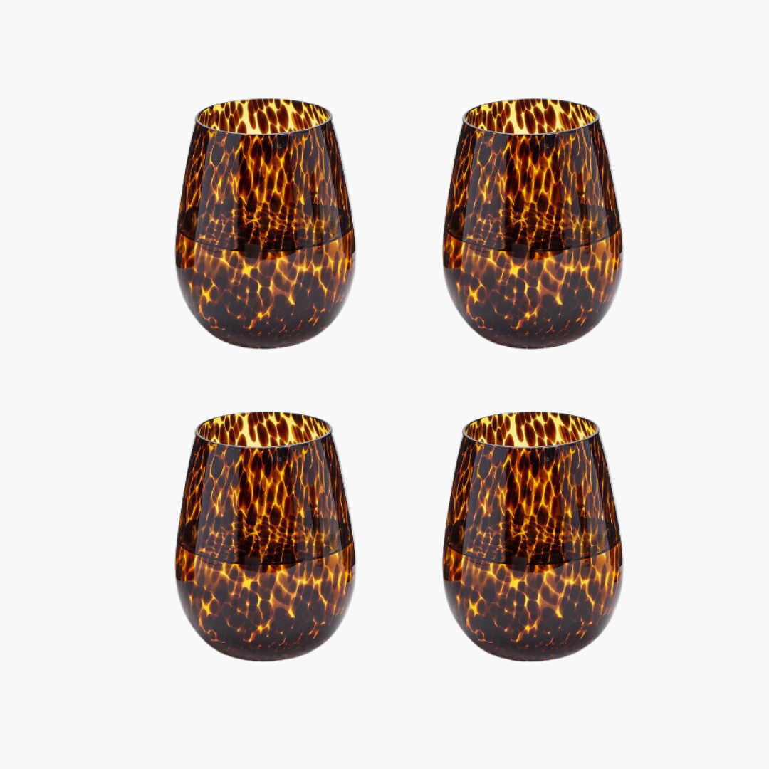 Tortoise Print Stemless Wine Glass