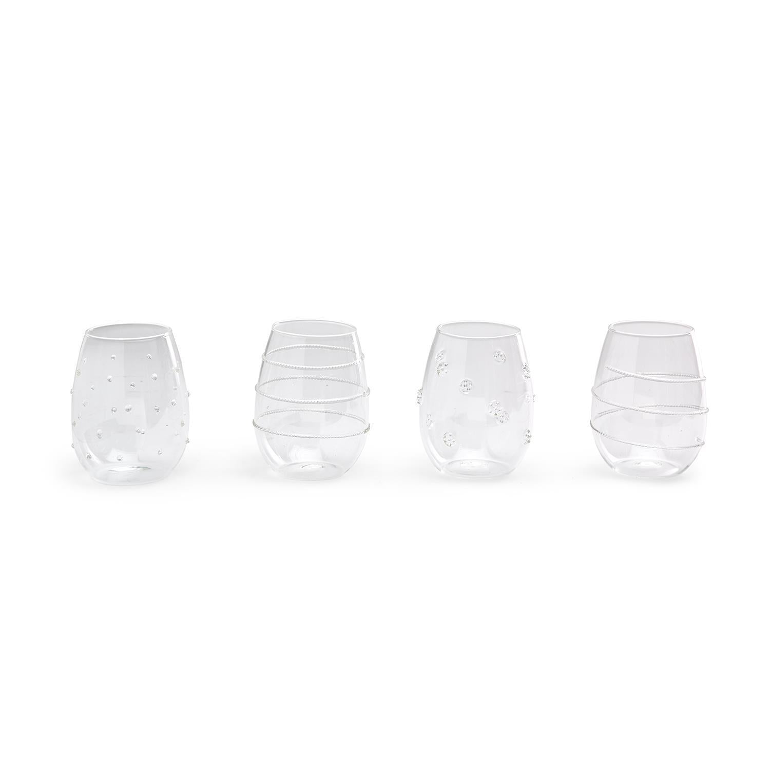 Celebrate in style! These hand blown stemless wine glasses will add something special to your celebratory cheers! Detailed with geometric and fun patterns these are a must have.