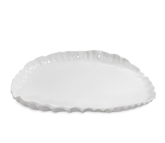 The lively Bloom Collection, presented in luxury melamine, represents a collaboration between Beatriz Ball and Louisiana-based ceramicist Gretchen Murchison. The Bloom Collection contains sculptural bowls and platters inspired by floral, botanical and other natural forms that are beautiful as well as functional. A case in point is the VIDA Bloom Pinched Large Oval Platter (White) in luxury melamine. With an organic form punctuated by rippling fluting, the dynamically designed serving platter combines beauty, artistry and functionality. Perfect for serving a variety of foods in style, it makes a striking piece of home decor. Presented in a glistening white melamine with the look of ceramics. Dishwasher safe (top rack), heavy-weight, food safe, BPA and PABA free.