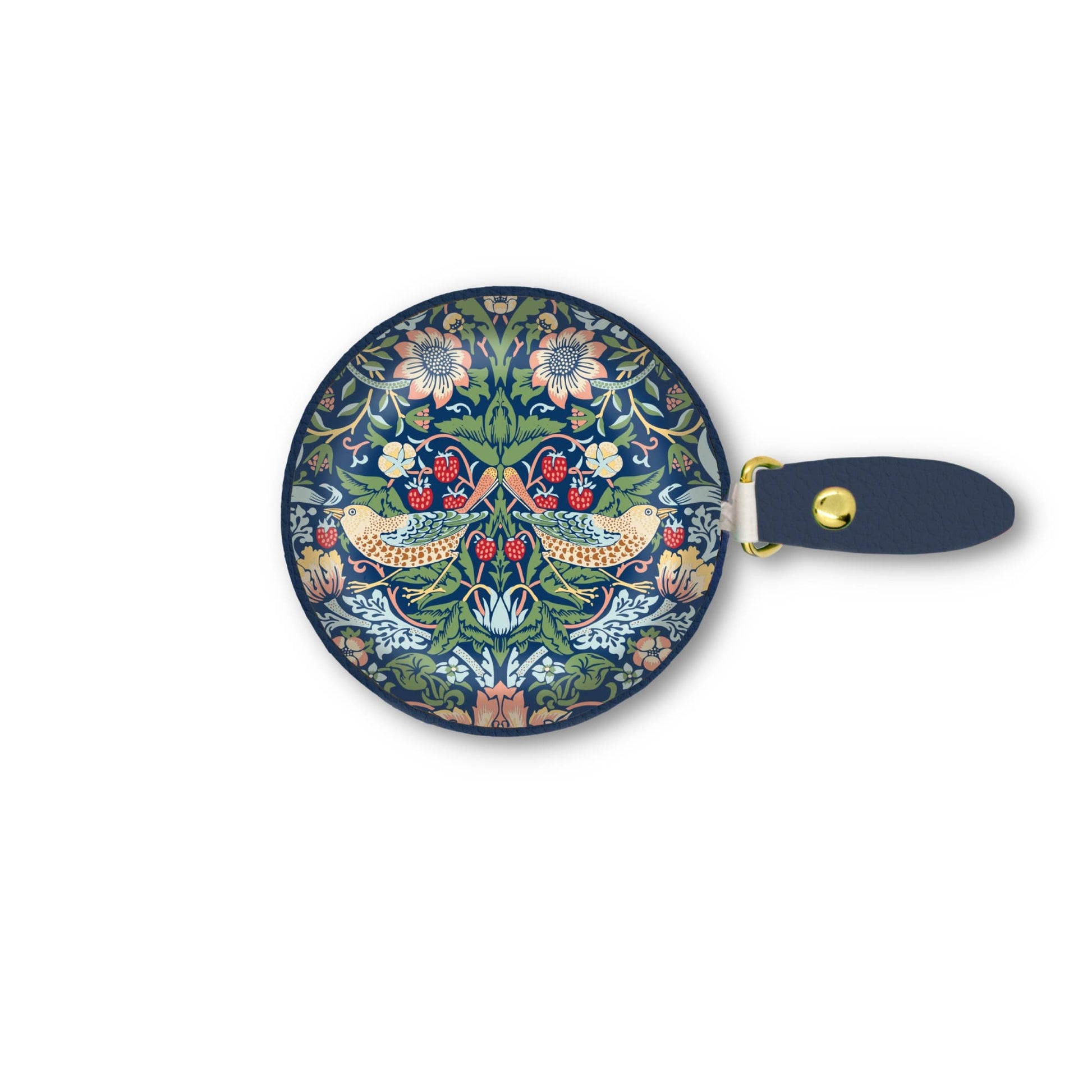 Add a touch of elegance with the William Morris Strawberry Thief Measuring Tape. Perfect for your home or on the go, these stylish measuring tapes are a must-have for any craft room, purse, or household. Each tape boasts a dual-sided design, up to 60 inches (150 centimeters) of measuring length, a sturdy pull tab, easy push retractable button, and luxurious vegan leather texture. Don't miss out on this exquisite collection. 2.4 inches in diameter, 0.25 inches thick.